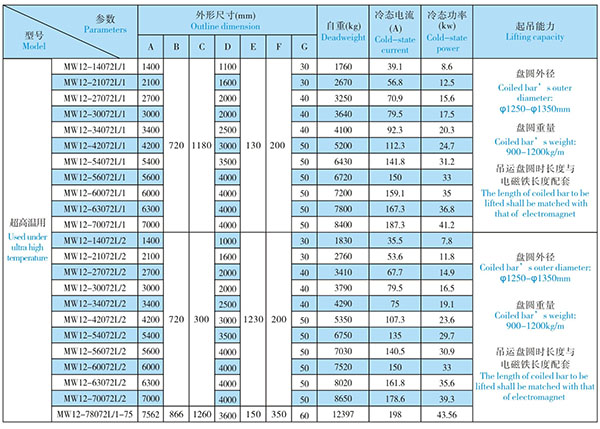 • MW12系列吊運高速線材(盤圓)用起重電磁鐵